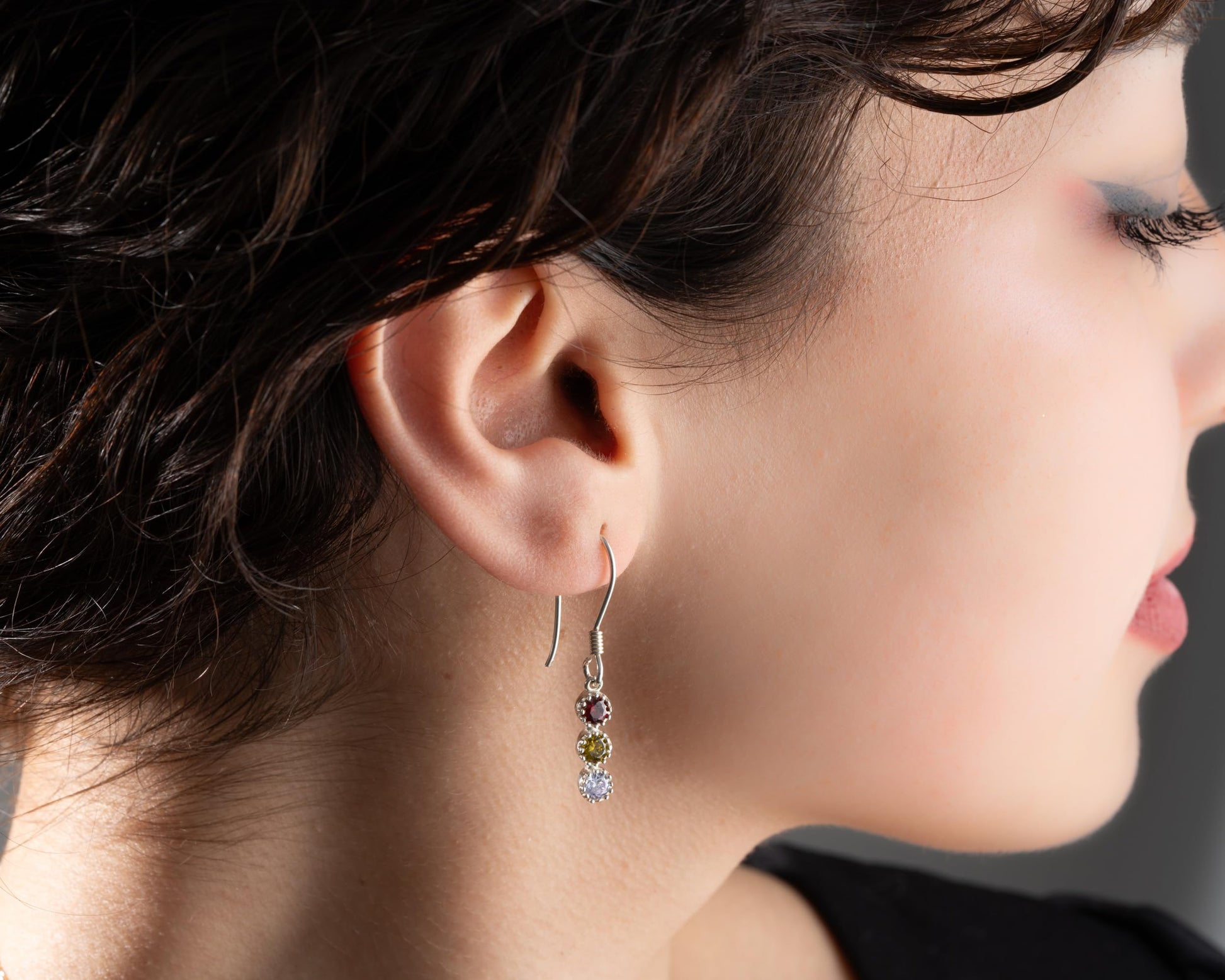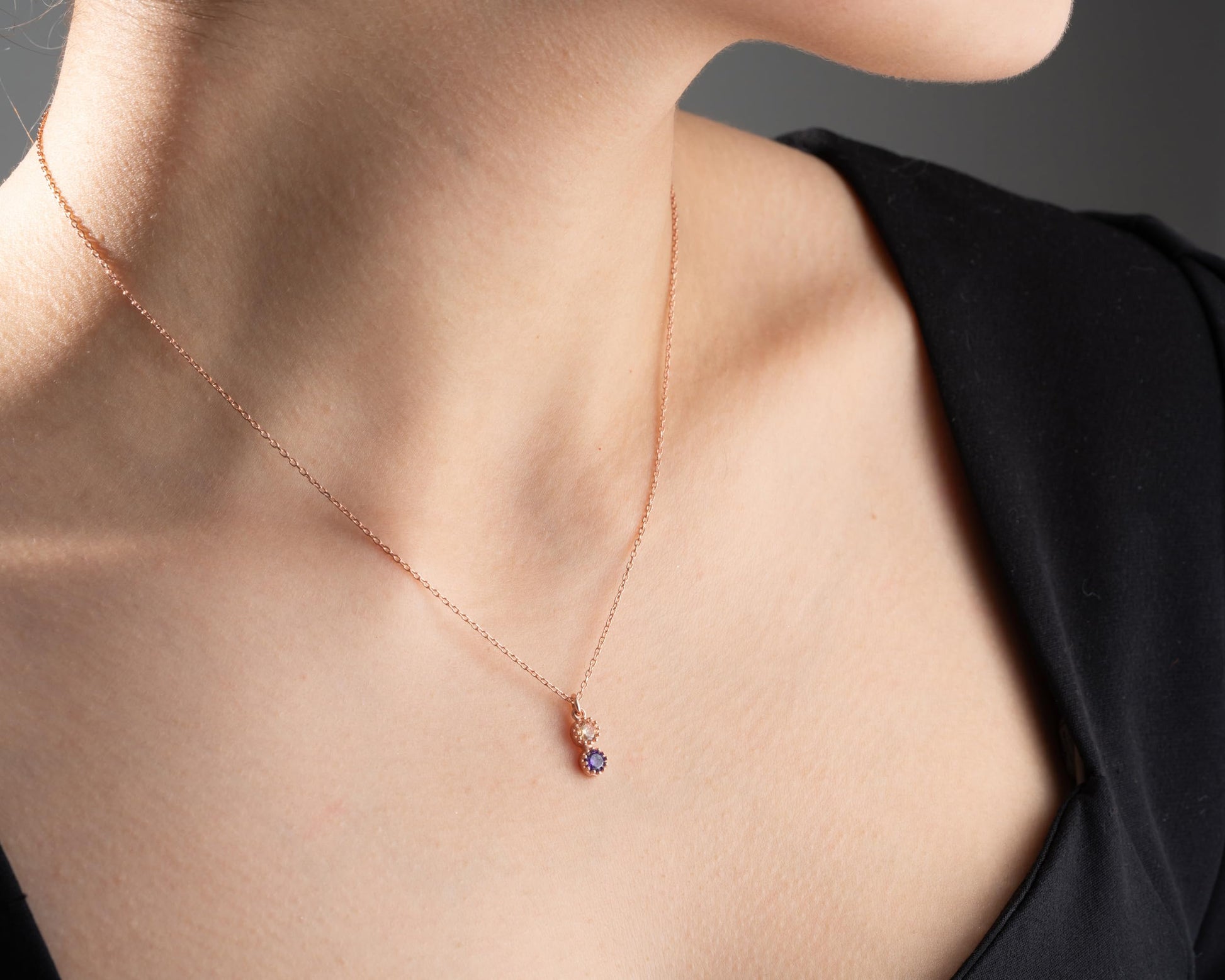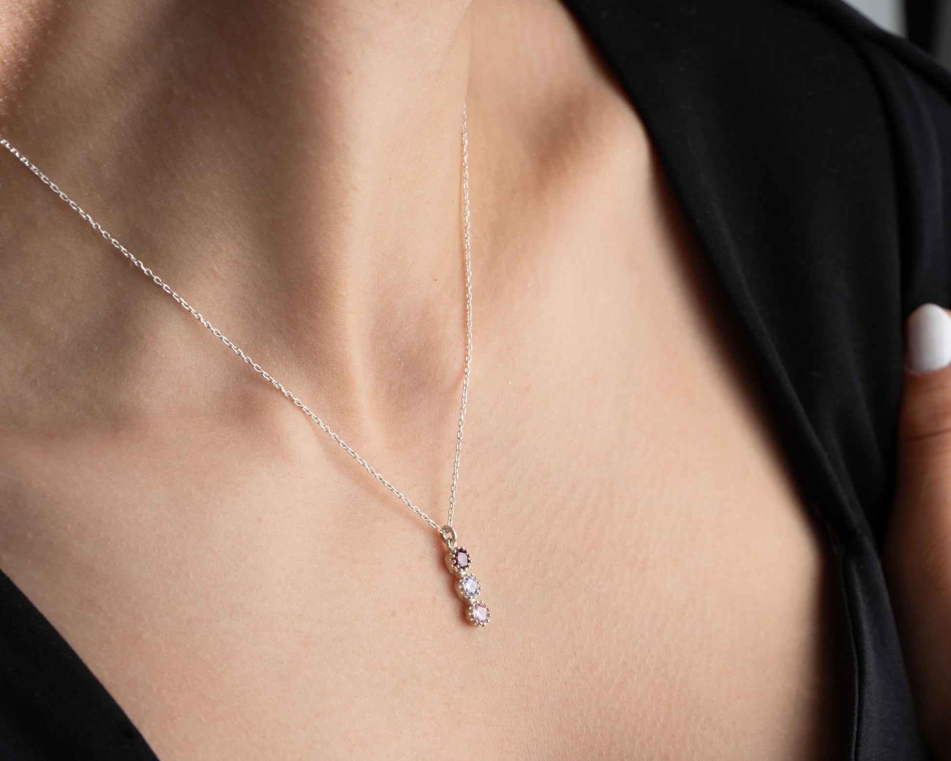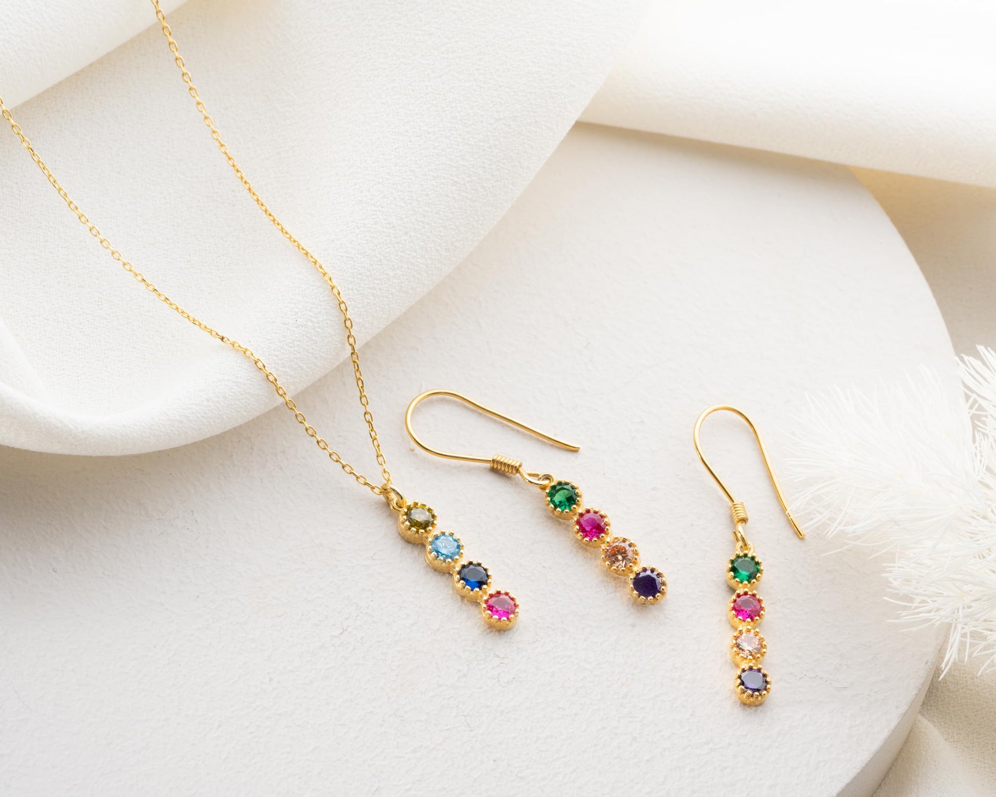 Personalized Necklace and Earring Set with Birthstones for Women, 925 Sterling Silver
